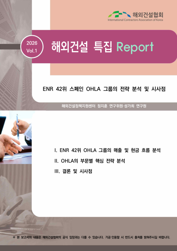 ENR 42위 스페인 OHLA 그룹의 전략 분석 및 시사점I. ENR 42위 OHLA 그룹의 매출 및 현금 흐름 분석 II. OHLA의 부문별 핵심 전략 분석 III. 결론 및 시사점2026-01-29